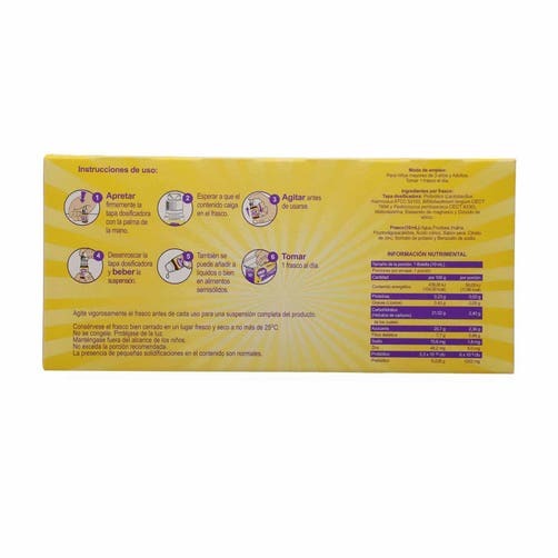 Suplemento en presentación líquida con microorganismos probióticos que ayudan a mantener una flora intestinal equilibrada. Incluye 7 frascos para consumo diario.